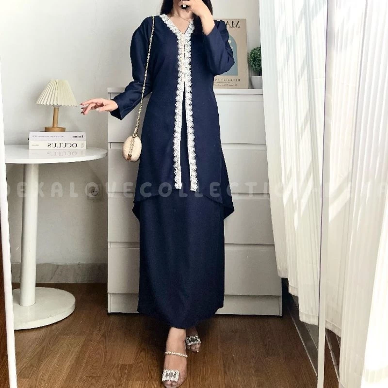 Potongan tunik santun dan rok flowy menciptakan siluet klasik yang timeless dan elegan untuk momen istimewa.